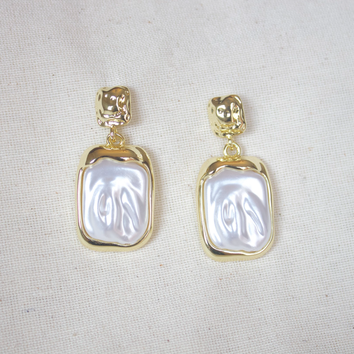 Stud dorado con perla cuadrada